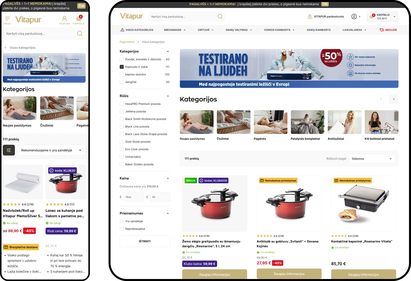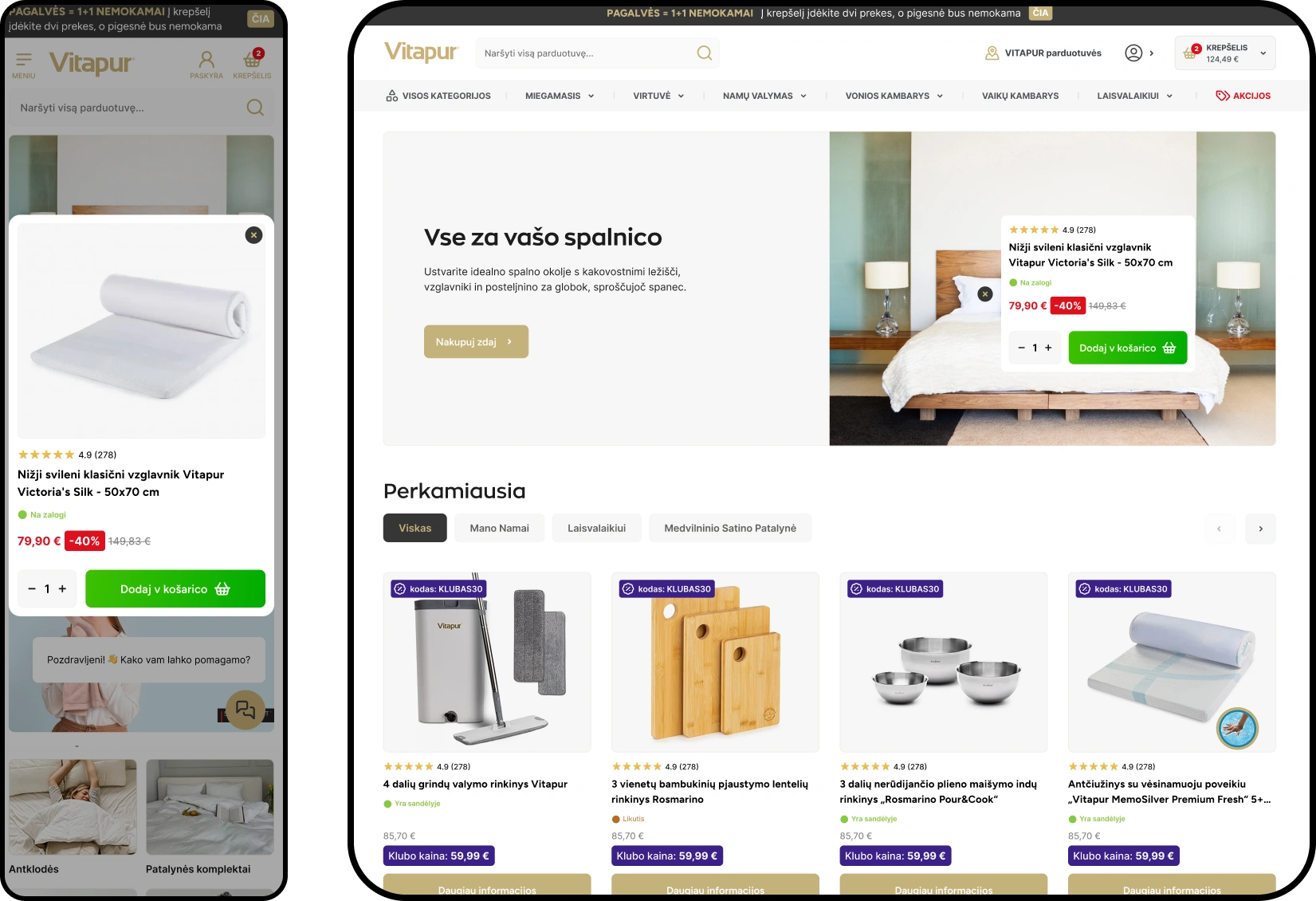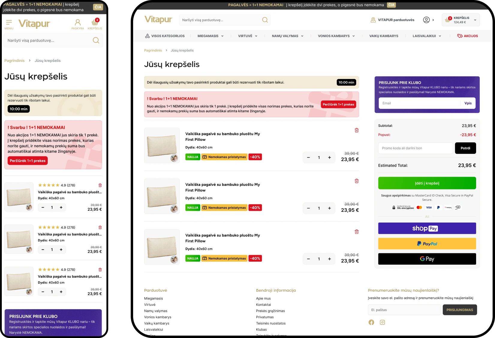 Vitapur club members and 1+1 promotions help customers get the most for their money while increasing conversion rates and AOV.