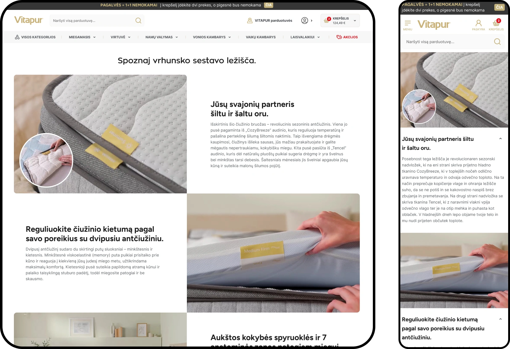 Vitapur is the leading mattress manufacturer in Slovenia which migrated from Magento to Shopify to support multi-market sales across more than 10 Eurozone markets including Germany, Lithuania, Austria, Poland, and Balkan countries. Features implemented include a checkout location pickup generator using Shopify Functions, stock availability integration with custom management systems, a customizable Dawn theme with marketing team-editable sections, special offer banners, club membership features with automatic discounts, and a privately distributed Remix Shopify app for handling discounts and Functions.